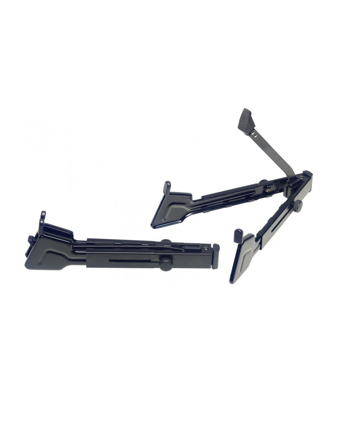 Stand universel, pliable, pour guitare acoustique et électrique - Construction en acier - 2 bras de support à longueur réglable, avec visses de blocage - reposoir avec recouvrement en caoutchouc pour un parfait maintien de l'instrument et la protection du vernis contre les rayures - Se replie complètement pour un transport aisé et un stockage économique - Longueur des supports: 31 - 40 cm - Largeur: 9 - 28 cm - Hauteur: 24,5 cm - Couleur: noir.