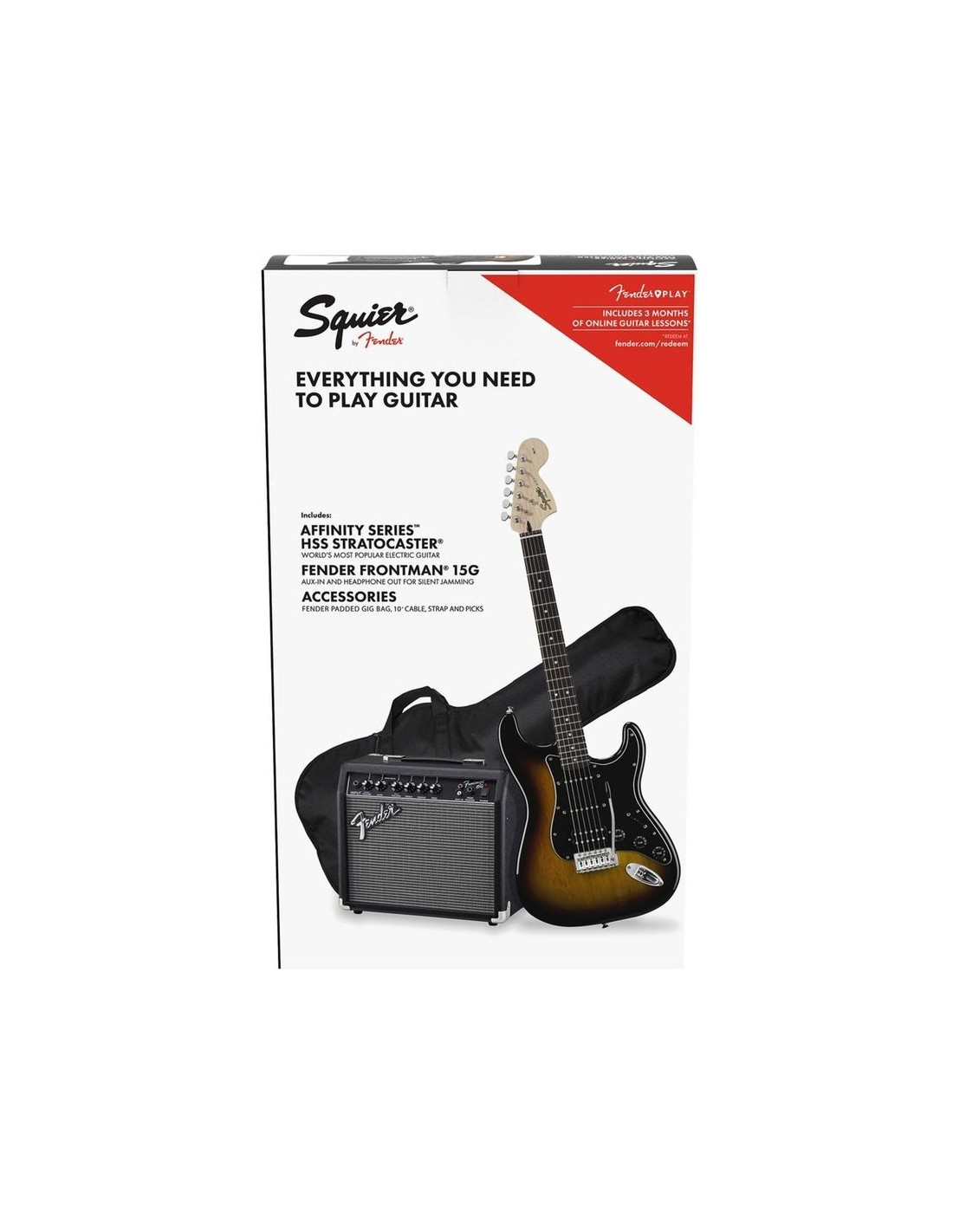 Squier propose une formule géniale pour l'apprentissage et même plus avec ce pack ! Vous trouverez l'intérieur tout ce qu'il vous faut : Une Affinity Squier Strat finition Brown Sunburst, un ampli Fender Frontman 15G, sangle, jack, médiators... Il ne manque rien !