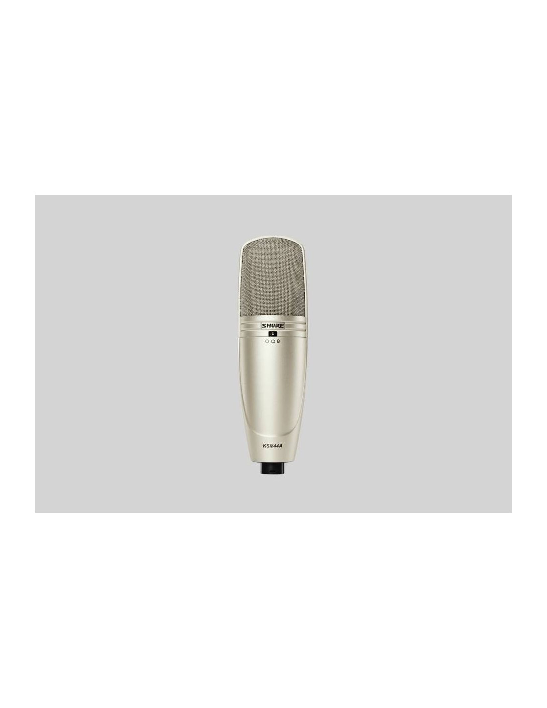 Microphone de studio haut de gamme avec double large diaphragme et trois directivités commutables, idéal pour la prise de son en studio.